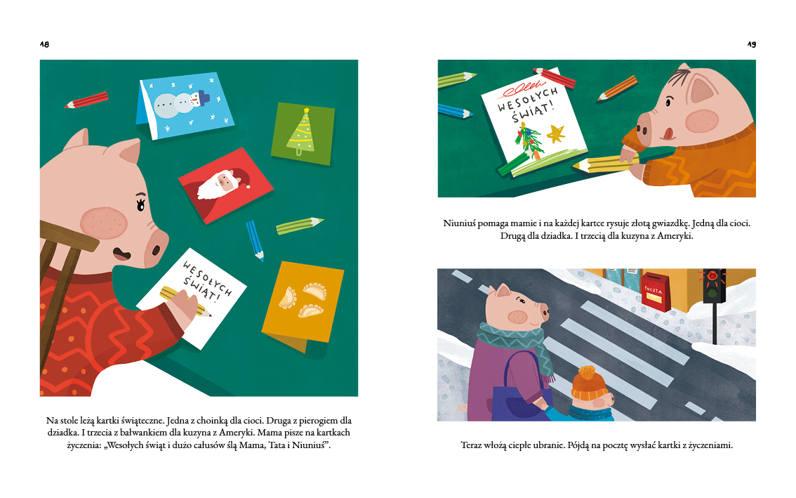 W grudniu dzieje się mnóstwo niesamowitych rzeczy, a Niuniuś wszystkie z nich przeżywa całym sobą. A to dla małego człowieka (i małej świnki) wcale nie jest takie łatwe… Jak zrozumieć emocje, które są naturalną odpowiedzią na świąteczny nadmiar bodźców? Odpowiedź przynosi książka Agi Nuckowski „Niuniuś czeka na święta” zilustrowana przez Aleksandrę Szwajdę.