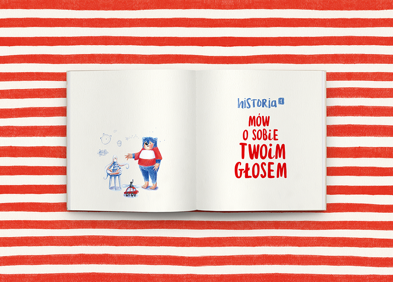 Faktycznie, Pink, mały niebieski stwór, który jedno ucho ma okrągłe, a drugie trójkątne, czuje, że za chwilę nie wytrzyma. Jeszcze moment i coś w nim bardzo głośno krzyknie: Nie chcę tak! Chcę sam o sobie opowiedzieć.