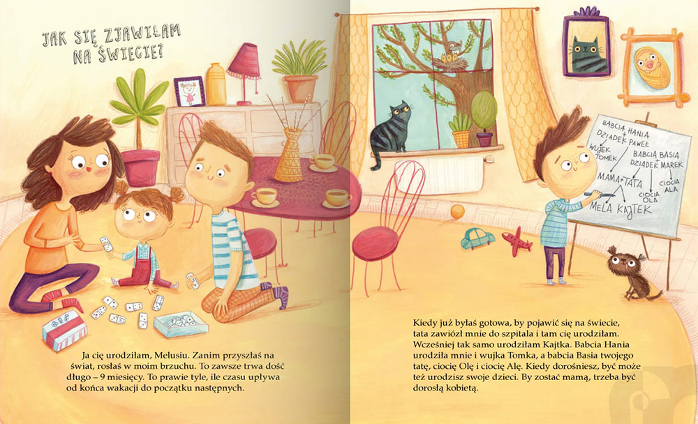 Rodzice Meli, bohaterki książki „O maluchu w brzuchu, czyli skąd się biorą dzieci”, każdego dnia dostają od córki serię niezwykłych pytań. Wiemy, niektórzy powiedzą, że dotykają one zbyt trudnych, skomplikowanych stref. Ale nie rodzice Meli! Oni nie widzą nic krępującego w odpowiadaniu na pytania dotyczące seksualności. Ich ilość zresztą rośnie w gwałtownym tempie, gdy Mela dowiaduje się, że będzie miała rodzeństwo. Z ogromnym zapałem zdobywa nowe informacje o płciowości i rozmnażaniu się – to przecież takie ciekawe! Możecie towarzyszyć Meli – ona wie już wszystko. Książka Marty Maruszczak i Moniki Filipiny to zresztą świetna podpowiedź dla rodziców, którzy nie za bardzo wiedzą, jak rozmawiać z starszymi dziećmi o młodszym rodzeństwie. Coś o tym wiemy!