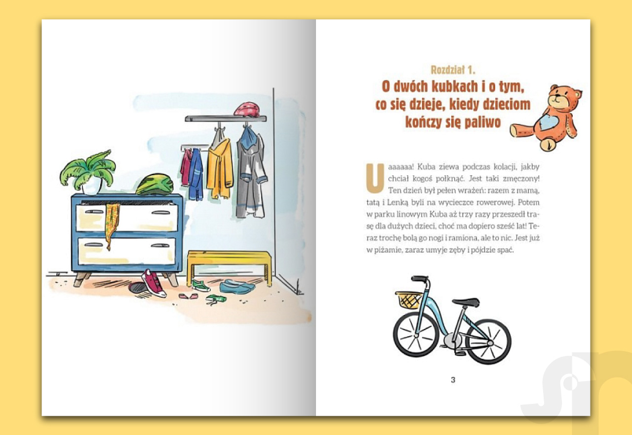 Opuszczamy Kanadę i sprawdzamy, co o samoregulacji piszą polscy trenerzy i trenerki Self-Reg. Należy do nich m.in. Agnieszka Stążka-Gawrysiak, autorka książki Self-Regulation. Opowieści dla dzieci o tym, jak działać, gdy emocje biorą górę. Bohaterowie lektury, Kuba i Lena, codziennie stawiają czoła wyzwaniom, które bardzo dobrze znane są każdemy przedszkolakowi, i – co najważniejsze – zawsze odnajdują rozwiązanie dla każdej trudnej sytuacji. Płynącą z nich naukę docenią nie tylko najmłodsi czytelnicy, ale także ich rodzice, dla których autorka przygotowała ramki z praktycznymi radami.