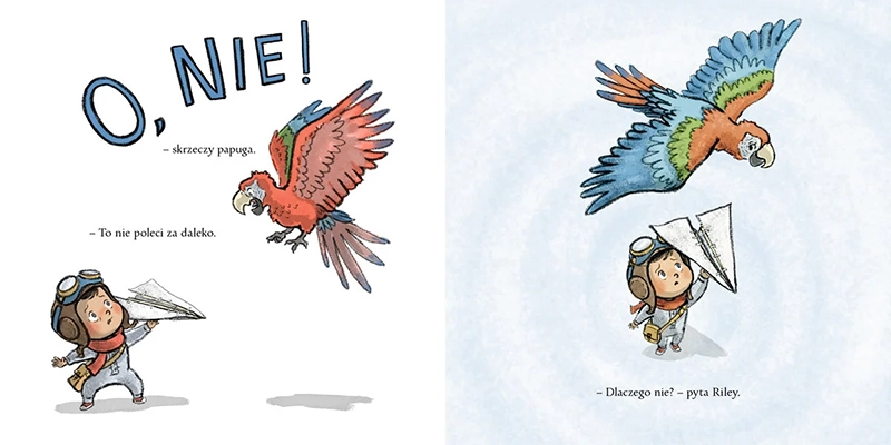 Riley składa samolot z papieru. Chce, żeby poleciał naprawdę wysoko! Orzeł uważa, że samolot powinien być większy. Papuga chciałaby, aby był bardziej fantazyjny. Sokół jest zdania, że będzie zbyt wolny. Jedno wiedzą na pewno: samolot jest nie taki, jak trzeba!