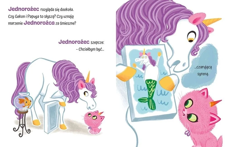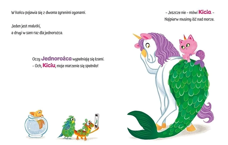 Jednorożec ma marzenie. Piękne, urzekające, zjawiskowe marzenie: pragnie być syreną! (Czasami. Nie przez cały czas). Kicia bardzo chce spełnić marzenie swojego najlepszego przyjaciela.