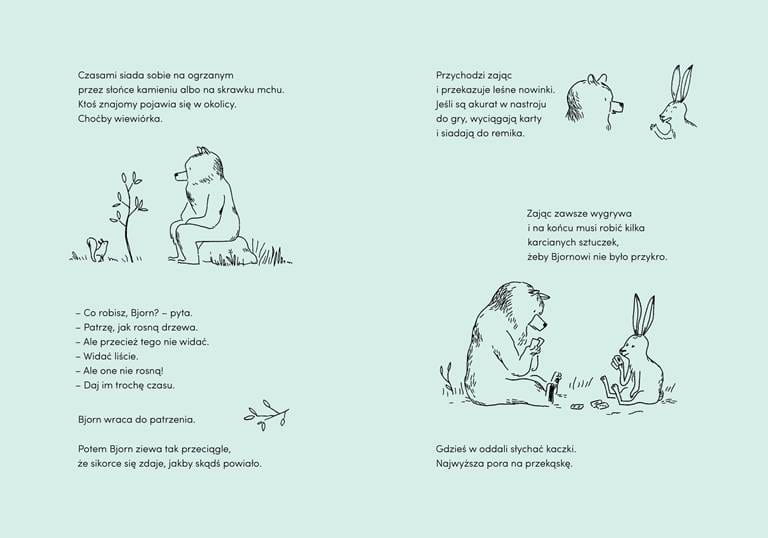 Bjorn. Sześć opowieści z lasu to powściągliwe w słowach, poetyckie historyjki, traktujące o ważnych sprawach - przyjaźni, tolerancji czy czerpaniu radości z szybko umykających drobnostek.