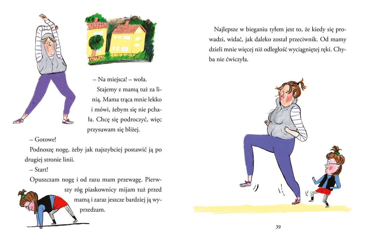 Dziś jest ten superdzień, kiedy mama i Bułeczka urządzają zawody. Zasady są proste: każda z nich wymyśla trzy konkurencje, nie wolno oszukiwać, a przegrana nie może obrażać się na tę, która wygra (co wcale nie jest takie proste!). Sędziuje babcia. Kto okaże się lepszy w biegu tyłem, kto w rzutach karnych, a kto w odgadywaniu smaków? Mama jest dobra w wielu rzeczach, ale tym razem Bułeczka ma plan!