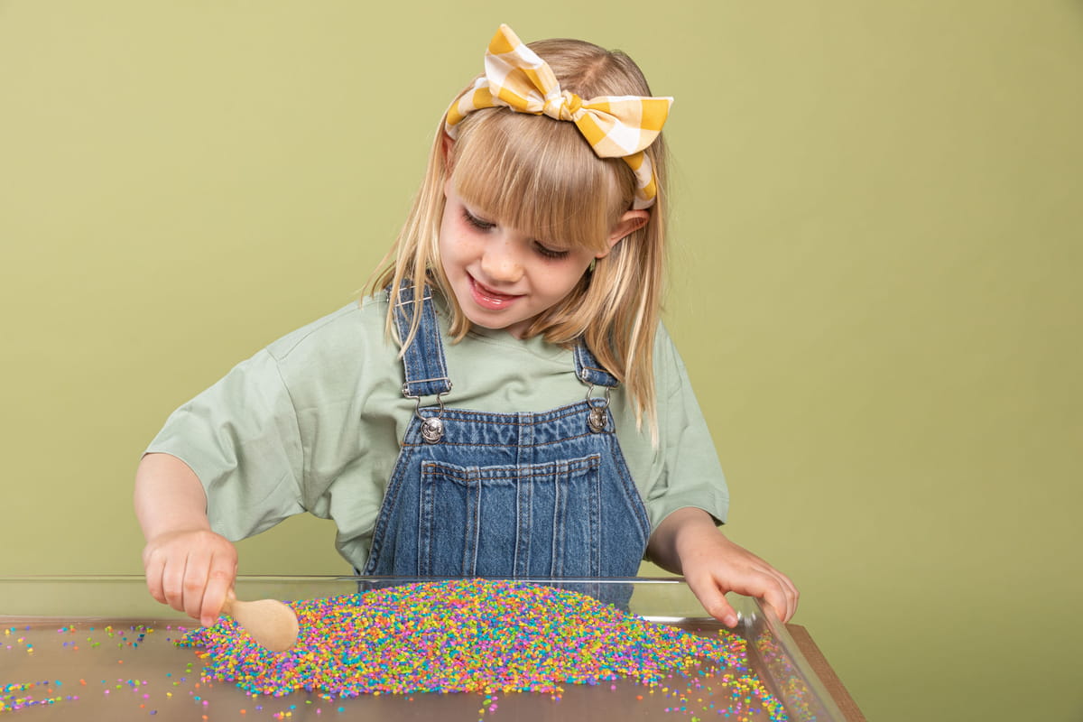 Zabawki sensoryczne wspierają rozwój zmysłów u dzieci. Ciekawe kolory, struktury rozwijają ich wyobraźnię i kreatywność. Wspomagają także integrację sensoryczną, czyli połączenie doznań wszystkich zmysłów w całość.