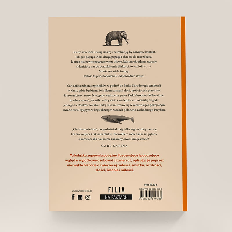 Czy zwierzęta kochają, tęsknią, smucą się i radują tak jak my? Czy są zdolne do współczucia, żałoby czy budowania więzi? Carl Safina, znany ekolog i autor, zaprasza nas na fascynującą wyprawę, która rzuca nowe światło na emocje i życie wewnętrzne naszych zwierzęcych towarzyszy na tej planecie.