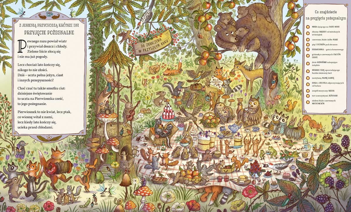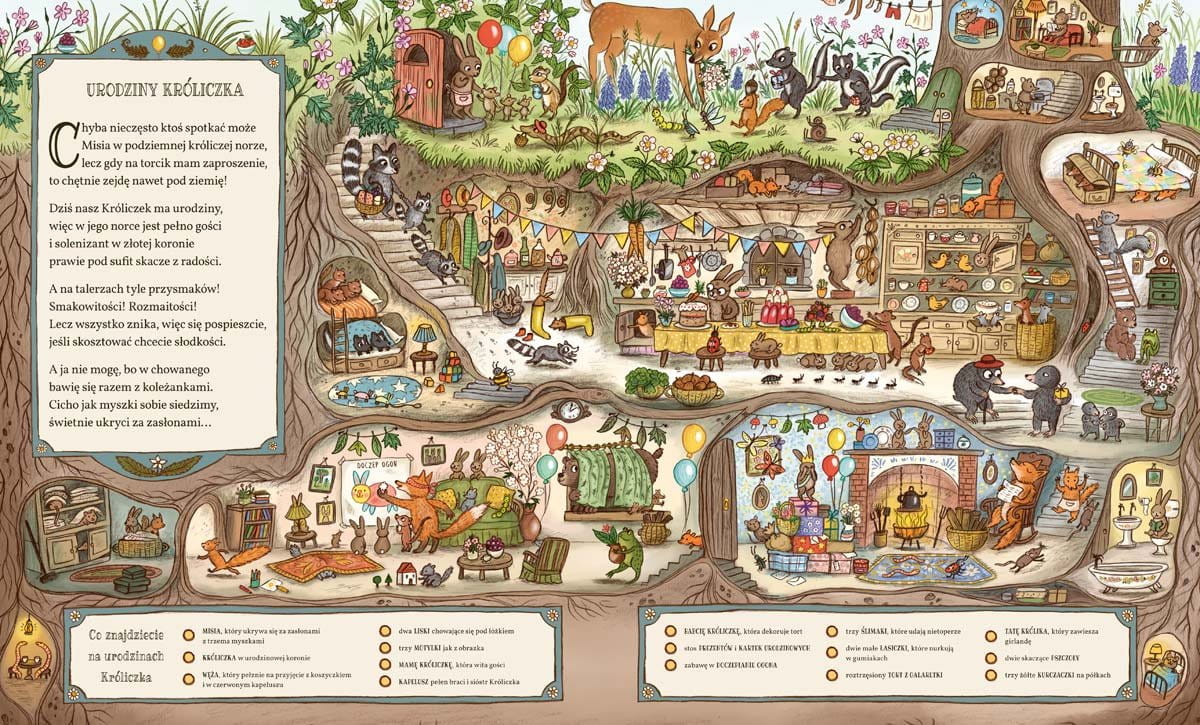 Przepięknie zilustrowana książka o misiowym lesie i jego mieszkańcach. Wypełniają ją wiersze i zadania, w sumie ponad 200 rzeczy do znalezienia!
