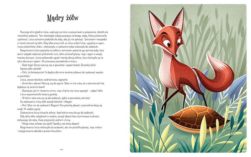 Ta przepiękna książka z ilustracjami Anny Láng zawiera bajki, których bohaterami są małe i duże zwierzęta. Są tu więc sprytne lisy, tchórzliwe zające, podstępne koty, naiwne owce, ciekawskie myszy, dumne lwy i wiele innych postaci. Ich niezwykłe przygody, doświadczenia i pomysły wywołają uśmiech na twarzach dzieci, ale też mogą skłonić do pomyślenia, jakie przesłanie ma usłyszana opowieść.