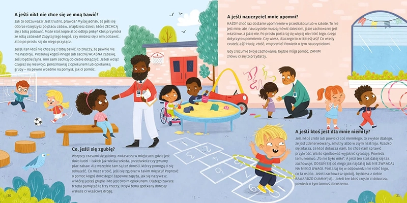 Ta książka, stworzona przy współpracy z psycholożką dziecięcą, oferuje praktyczne wskazówki i porady zarówno dla pięciolatków, jak i nieco młodszych oraz starszych dzieci. To znakomite narzędzie, które wspiera zarówno dorosłych, jak i dzieci w radzeniu sobie z wyzwaniami dnia codziennego.