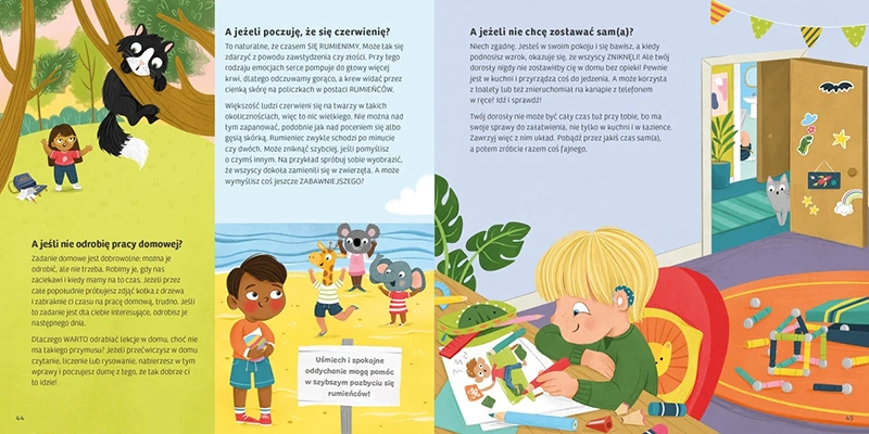 Lekki ton tekstu i zabawne ilustracje sprawiają, że czytanie tej książki staje się nie tylko edukacyjne, ale również przyjemne. Pomaga ona budować pewność siebie, wzmocnić odporność psychiczną i skłania do otwartej rozmowy o emocjach. Dzięki niej dzieci uczą się myśleć niezależnie i radzić sobie z trudnościami, które napotykają w życiu.