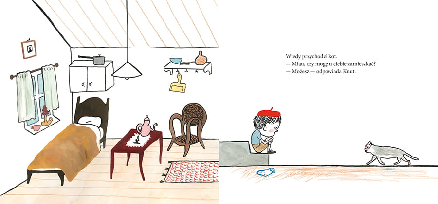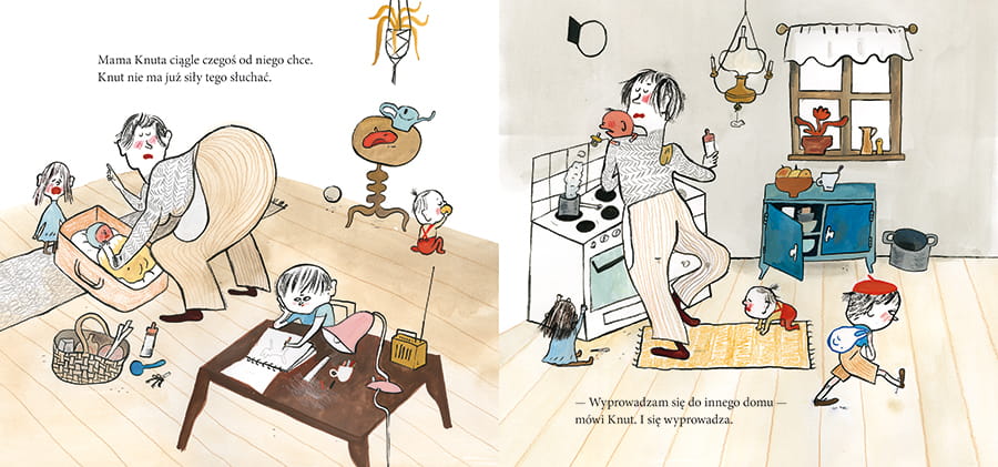 Mama Knuta ciągle czegoś od niego chce. Knut nie ma już siły tego słuchać. Pewnego dnia wyprowadza się do innego domu. Nareszcie ma spokój. Nagle pojawia się kot. Potem przychodzą: pies, świnia, koń i inne zwierzęta. Wszyscy chcą mieszkać u Knuta…