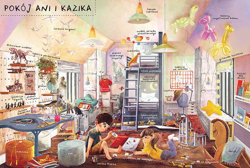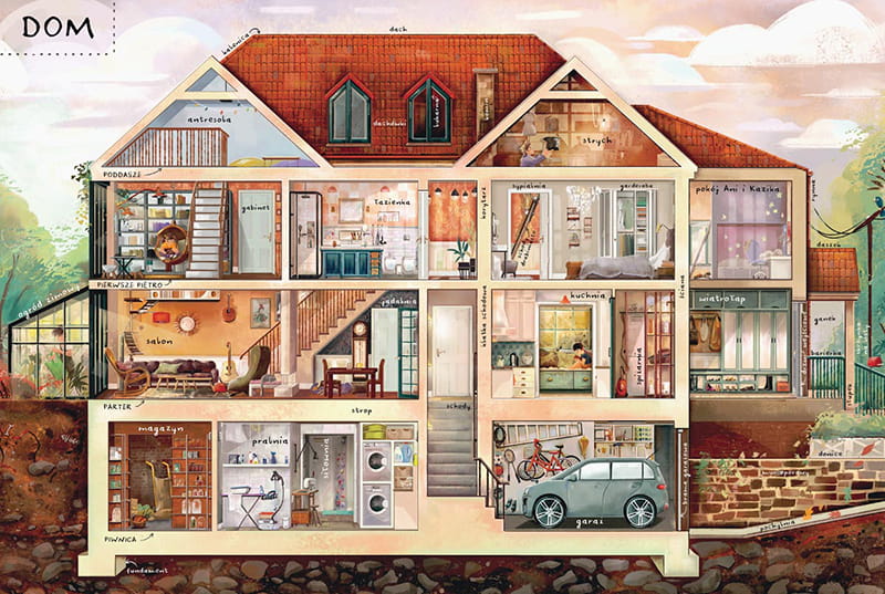 Czy zastanawialiście się kiedyś, co kryją w sobie różne pomieszczenia? Teraz możecie zajrzeć w każdy zakamarek ogromnego domu Ani i Kazika. Spędźcie trochę czasu w ich pokoju, a potem koniecznie wpadnijcie do siłowni i jadalni.