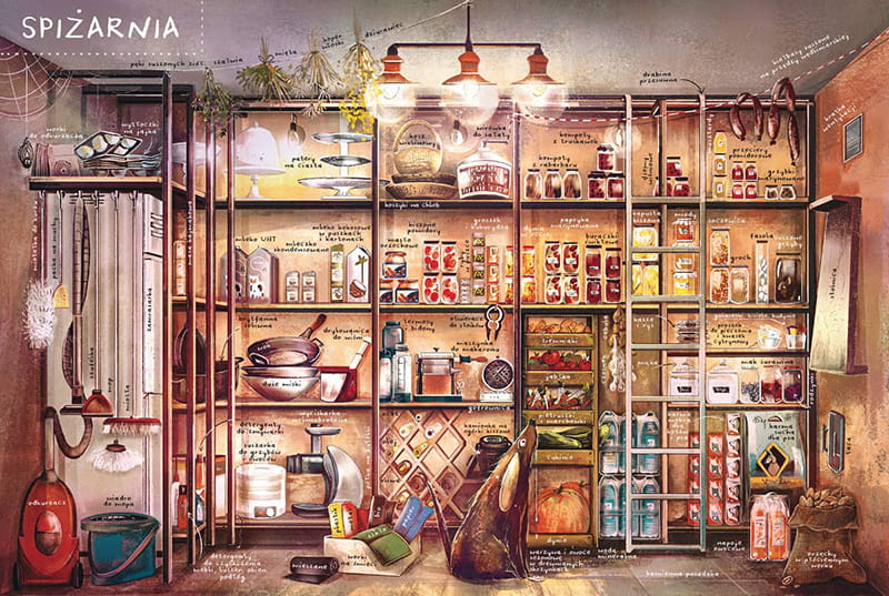 Pomyszkujcie w gabinecie, łazience i pralni z kącikiem do szycia. Warto też dłużej zabawić w spiżarni czy garażu. A może najciekawsze rzeczy czekają na strychu?