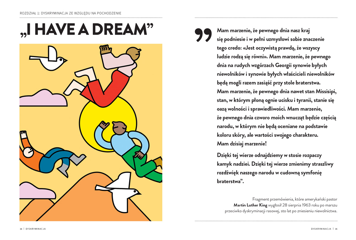 To wszystko wciąż się zdarza, choć trudno to zrozumieć i nie sposób się z tym pogodzić. Książka, przedstawiając rozmaite przejawy dyskryminacji, czyli odrzucania drugiego człowieka ze względu na to, kim jest, uwrażliwia czytelników na prześladowanie jednostek i grup społecznych. Przywołując fakty i dowody, otwiera oczy na niesprawiedliwość i składa hołd tym, dzięki którym coś się w tej kwestii zmieniło.