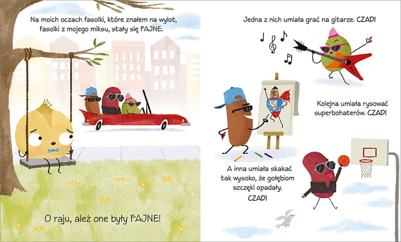 Ta mądra, pozytywna, a przy tym zabawna i wielopoziomowa opowieść o Cieciorku, który chciałby należeć do paczki popularnych kumpli, to sposób na to, by w przystępny i bezpośredni sposób zaprosić dziecko do rozmowy o emocjach, uczuciach i potrzebie przynależności. A także o tym, skąd bierze się charyzma i co jest naprawdę cool! Kapitalnie napisana, zręcznie przetłumaczona i wspaniale zilustrowana książka to niezwykły prezent zarówno dla młodszych, jak i starszych czytelników. Maluchy znajdą tu zabawną historyjkę, a starsi – uniwersalną przypowieść o tym, że życzliwość, otwartość, pozytywne nastawienie i humor mają znacznie większą siłę przyciągania niż modne ciuchy i czaderskie gadżety.