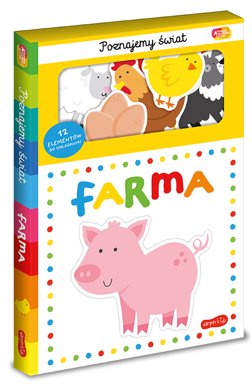 Książka pod tytułem: Farma to kolejna interesująca pozycja w serii Poznajemy świat Akademii Mądrego Dziecka. Książeczka wraz z dwunastoma puzzlami znajduje się w etui, dzięki czemu wszystko mamy ładnie razem zapakowane i do tego mamy pewność, że nie zgubimy puzzli po wspólnej zabawie z dzieckiem.