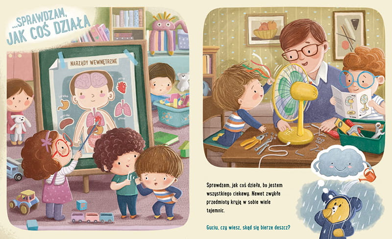 Feluś jest bardzo zajęty! Jak każdy przedszkolak zadaje mnóstwo pytań, lubi fantazjować, szukać, sprawdzać i eksperymentować. Sam potrafi wymyślać sobie wspaniałe zabawy i wcale nie potrzebuje nowych zabawek – wystarczą przyjaciele, patyk lub kamyk!