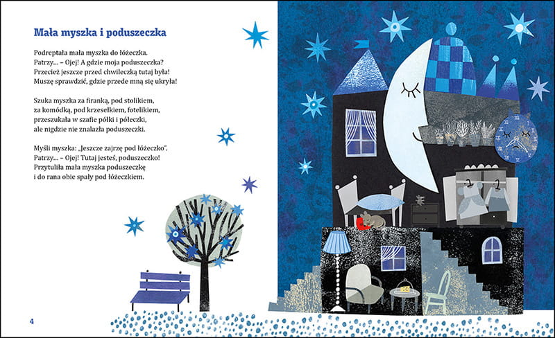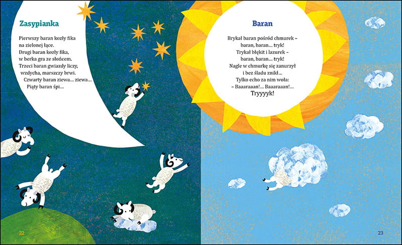 Zupełnie nowe wydanie – znacznie rozszerzone i tym razem zilustrowane przez Agnieszkę Żelewską – bestsellerowej książki, którą pod tytułem „Wiersze do poduchy” dekadę temu poznało i pokochało wiele maluszków, ich mam i tatusiów.