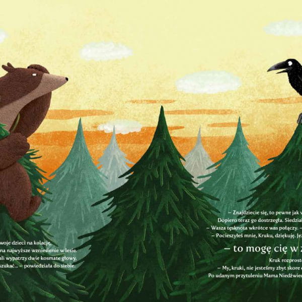 Po pełnym emocji dniu Tata Niedźwiedź i mały Niedźwiadek, stęsknieni, spieszą na spotkanie z Mamą Niedźwiedzicą. A tymczasem gdzieś daleko Mama Niedźwiedzica szuka krzywej wierzby, pod którą się umówili.