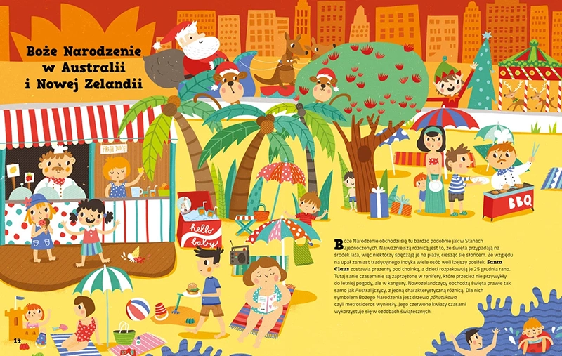 Książka "Jak dzieci świętują Boże Narodzenie na całym świecie" to niesamowita podróż po świątecznych tradycjach i zwyczajach dzieci z różnych zakątków świata. Autor zaprasza czytelników do fascynującego świata, gdzie na wigilijnym stole króluje ciasto truskawkowe zamiast karpia, a Święty Mikołaj przemieszcza się saniami zaprzężonymi w kangury.