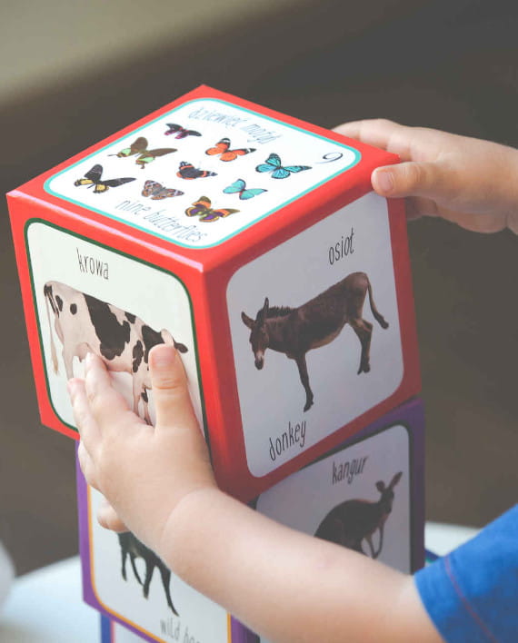 - Nauka języków - Dzięki dwujęzycznym opisom, dziecko uczy się słów po polsku jak i po angielsku, dzięki czemu w zabawie nie zauważa nawet elementu nauki.