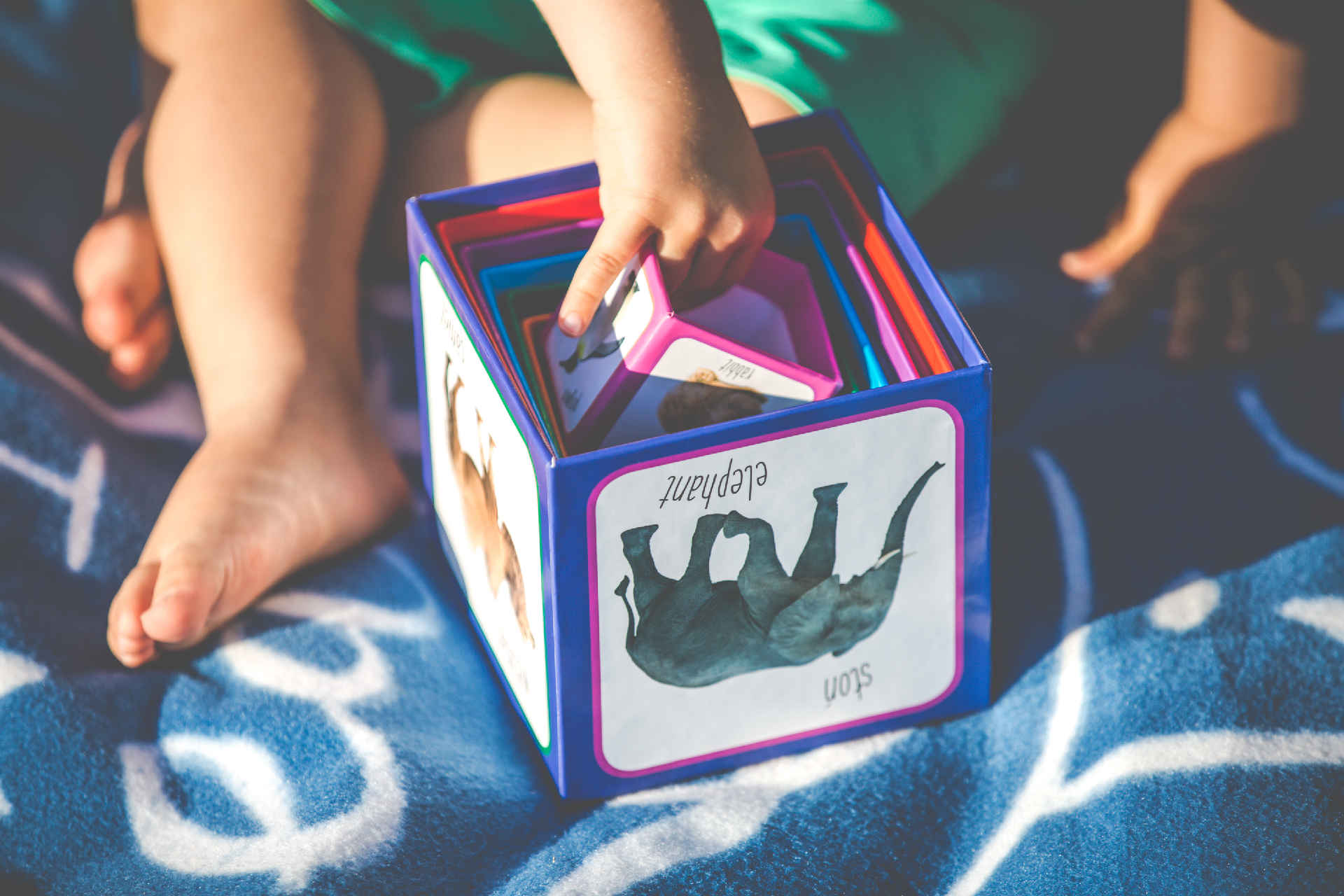 - Ćwiczenie motoryki - Dziecko ćwiczy małą motorykę układając klocki w piramidę lub wkładając mniejsze klocki w większe.