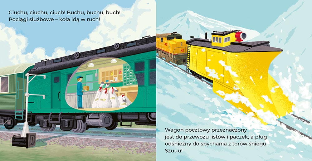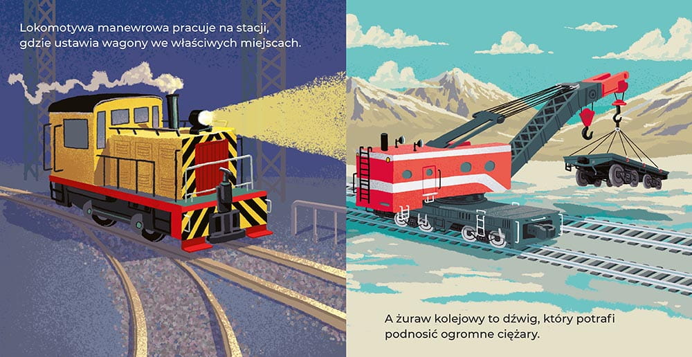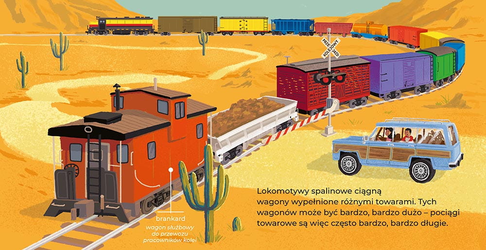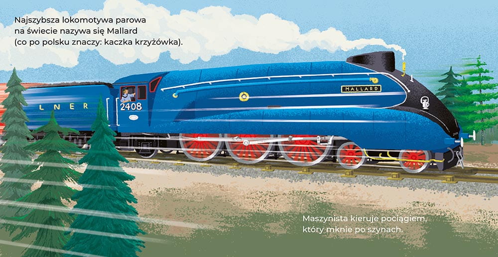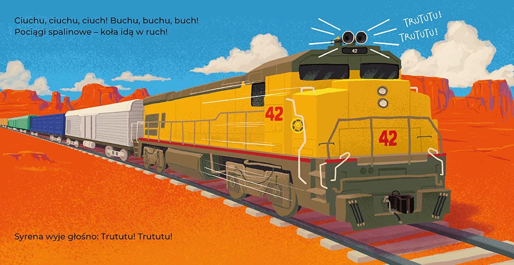 Czy wiecie, jak nazywa się najszybsza lokomotywa parowa i gdzie na świecie jeżdżą jeszcze tramwaje linowe? Co robi żuraw kolejowy, a co lokomotywa manewrowa? Co to jest tender albo brankard? I do czego właściwie służy gwizdawka? Poznacie też słynny Orient Express oraz różne rodzaje wagonów. Jesteście gotowi na wyprawę do niezwykłego świata pociągów? Ciuchu, ciuchu, ciuch! Koła idą w ruch!