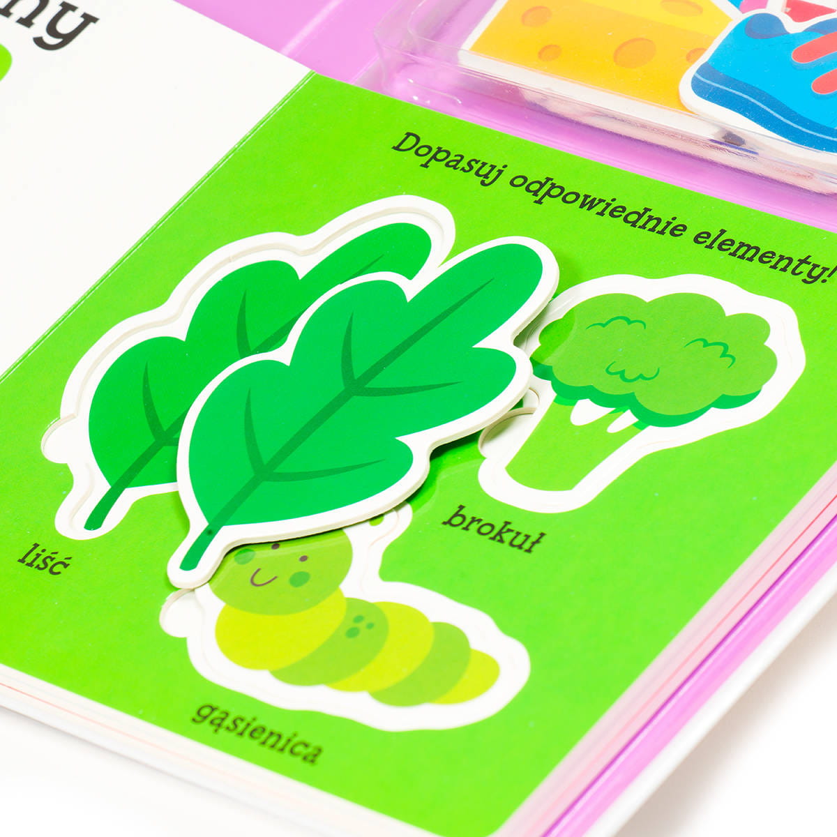 Idealny zestaw dla maluchów. W pudełku znajduje się książeczka ucząca o kolorach. Każda rozkładówka pokazuje jeden kolor oraz rzeczy z nim związane. Dodatkowo dzieci muszą dopasować puzzle do każdego koloru, co jest świetną zabawą, a dodatkowo utrwala wiedzę o kolorach. Seria książeczek Poznajemy świat z Akademii Mądrego Dziecka pokazuje i uczy świata, dodatkowo ćwicząc małą motorykę i pomagając w skupieniu.