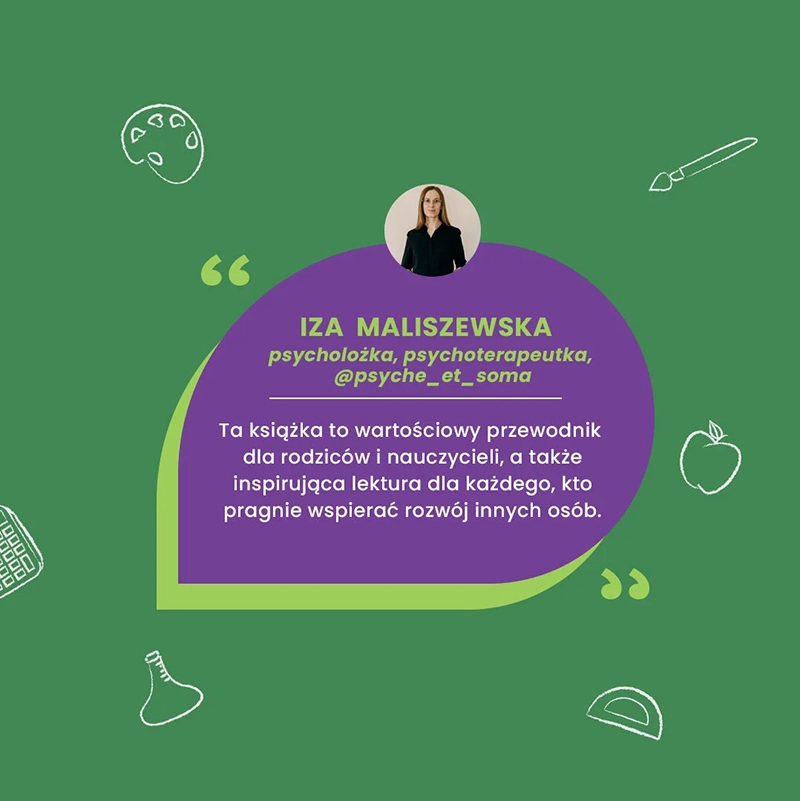 "Jakie są szanse na to, że w najbliższym czasie system edukacji zmieni się na tyle, aby w końcu w uczniach i uczennicach dostrzegł jednostki o różnych potrzebach, postawach i predyspozycjach? Obstawiam, że niewielkie. Dlatego właśnie my, rodzice, potrzebujemy tej książki. Po to, by mądrze wspierać nasze dzieci w codziennej edukacji – żeby z uczenia się czerpały przyjemność i widziały swoje postępy.