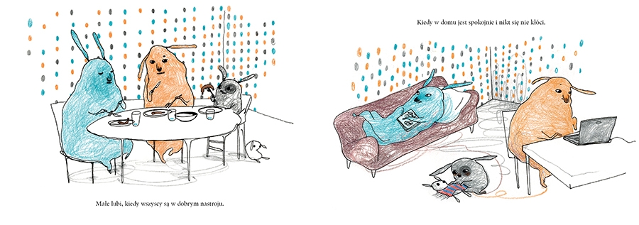 Małe lubi, kiedy w domu jest spokojnie i nikt się nie kłóci. Jednak w domu u Małego często wybuchają awantury. Wtedy Małe się boi. Dobrze, że jest przedszkole i że Pani jest dla Małego taka dobra!