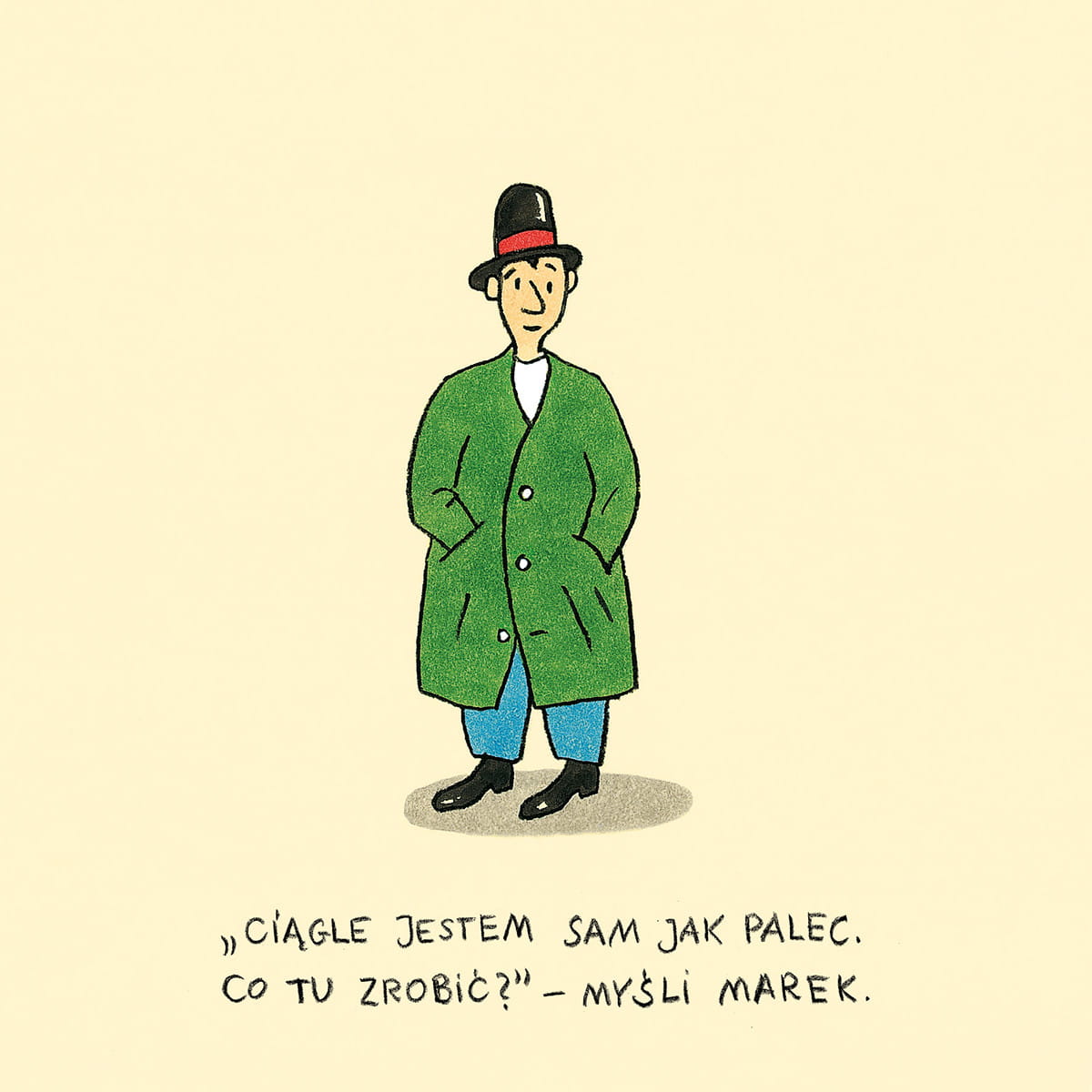 Mieszka tu Marek. Nie znasz go jeszcze? Zobacz, jest w parku. Kto za nim drepcze?Wierszowana książeczka o bohaterach kultowej serii wyszukiwanek. Dla małych fanów ulicy Czereśniowej i dla tych, którzy jej jeszcze nie znają.