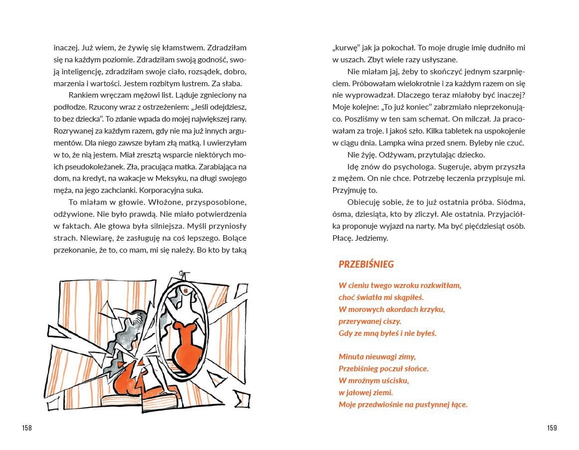 Tekstowi towarzyszą rysunkowe anegdoty Karyny Piwowarskiej oparte na autentycznych dialogach Olgi i jej męża.