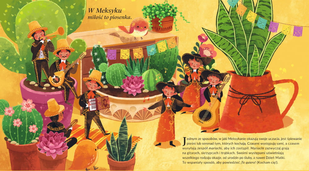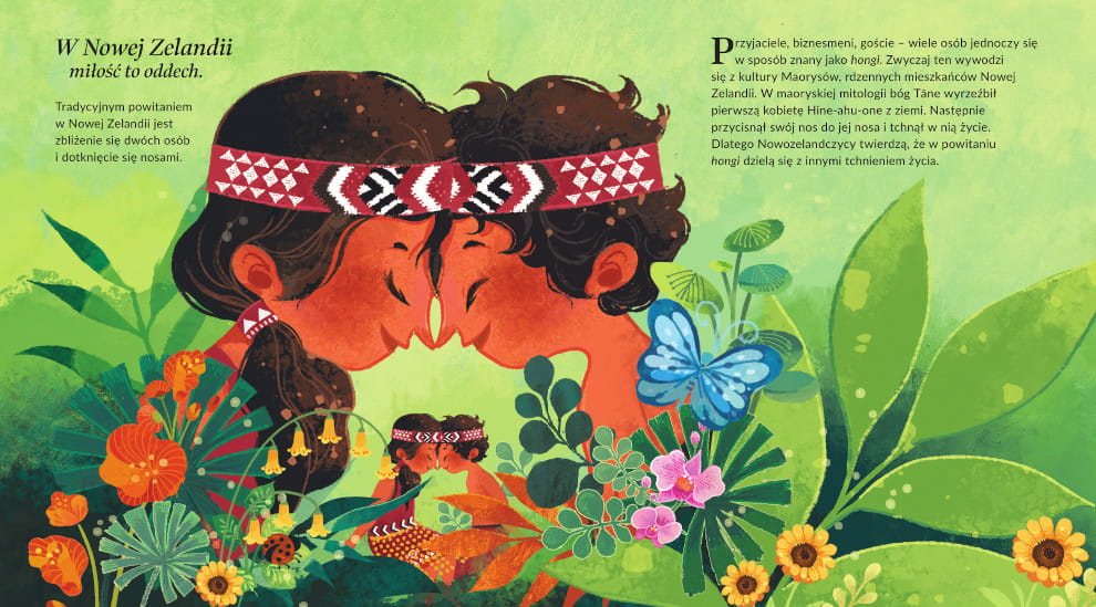 Pełna ciepła i barw opowieść o tym, jak ludzie na całym świecie okazują sobie uczucia. Od Japonii po Chile, od rodzinnych gestów po przyjacielskie symbole – książka odkrywa przed czytelnikami niezwykłe tradycje, które łączy jedno: miłość.
