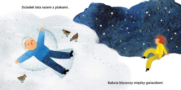 Pięknie ilustrowana opowieść o babciach i dziadkach.Książka zachęca do refleksji nad swoją relacją do dziadków. Dziecko poczyni ją w warstwie obrazowej, a dorosły znajdzie tę chwilę zastanowienia między wierszami, w metaforach i wieloznacznościach.