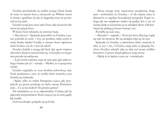Biedna Jonna! Tak marzyła, żeby jej mama byłą elegancka i pachniała perfumami. Gorylica jest wielka‚ niezgrabna i niechlujnie ubrana. W dodatku podobno pożera dzieci. Niestety Jonna nie ma wyboru. Gorylica zabiera ją ze sobą. Jaki los czeka Jonnę? Czy spełnią się jej obawy? I czy wróci do domu dziecka, gdy tak postanowi urząd gminy?