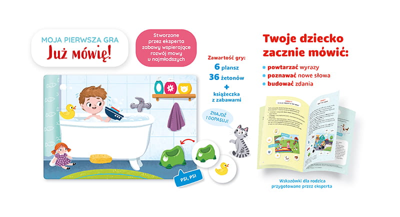 Moja pierwsza gra Już mówię zaprasza do wspólnej zabawy rozwijającej mowę i zasób słownictwa u najmłodszych dzieci.