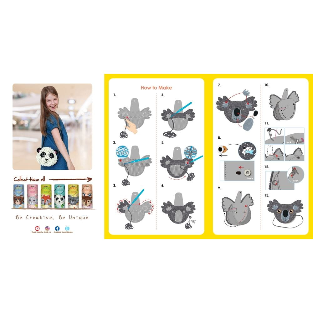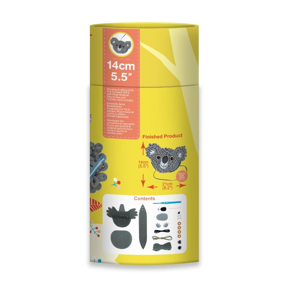Ciesz się nauką szycia z zestawem, który zawiera wszystko, czego potrzebujesz: filc, grubą miękką włóczkę, szydełko i instrukcje krok po kroku. Dzieci same mogą stworzyć swoją własną pluszową torebkę.