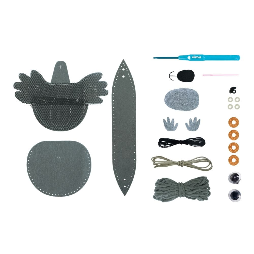 Zawartość: wycięte kawałki filcu, sznurki i włóczki, szydełko do robienia pętelek, bezpieczna igła, ozdoby, instrukcja.