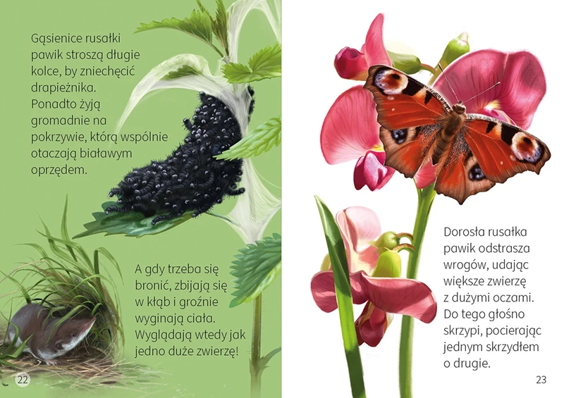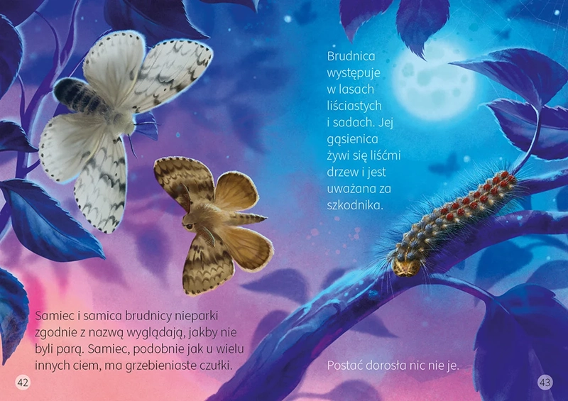 Przyjrzą się najpopularniejszym gatunkom – zarówno dziennym, jak i nocnym – w Polsce i nauczą się je rozpoznawać. Poznają też wygląd gąsienic oraz ich sposoby na to, by nie dać się zjeść. Dzięki pięknym, realistycznym ilustracjom rozpoznają motyle i gąsienice, które widują na co dzień.