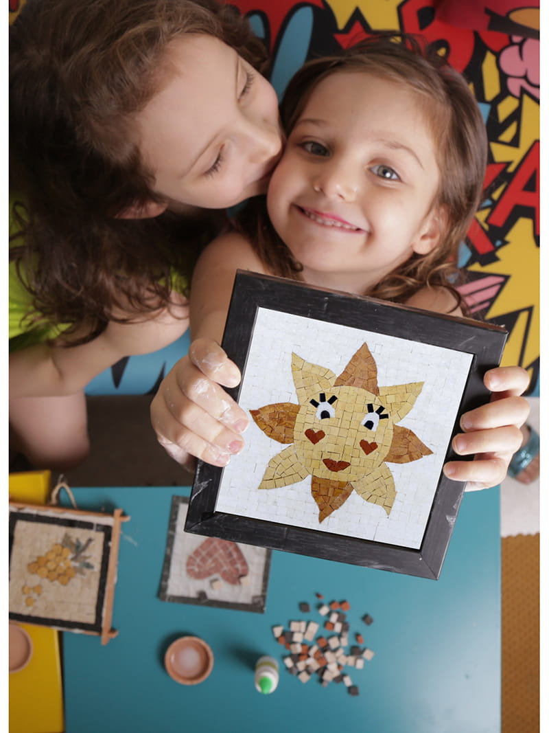 - edukacja historyczna i kulturowa: układanie mozaik ma bogatą historię i jest często związane z różnymi kulturami i tradycjami. Poprzez praktykę układania mozaik, dzieci mogą również zdobywać wiedzę na temat historii sztuki, architektury i różnych kultur.