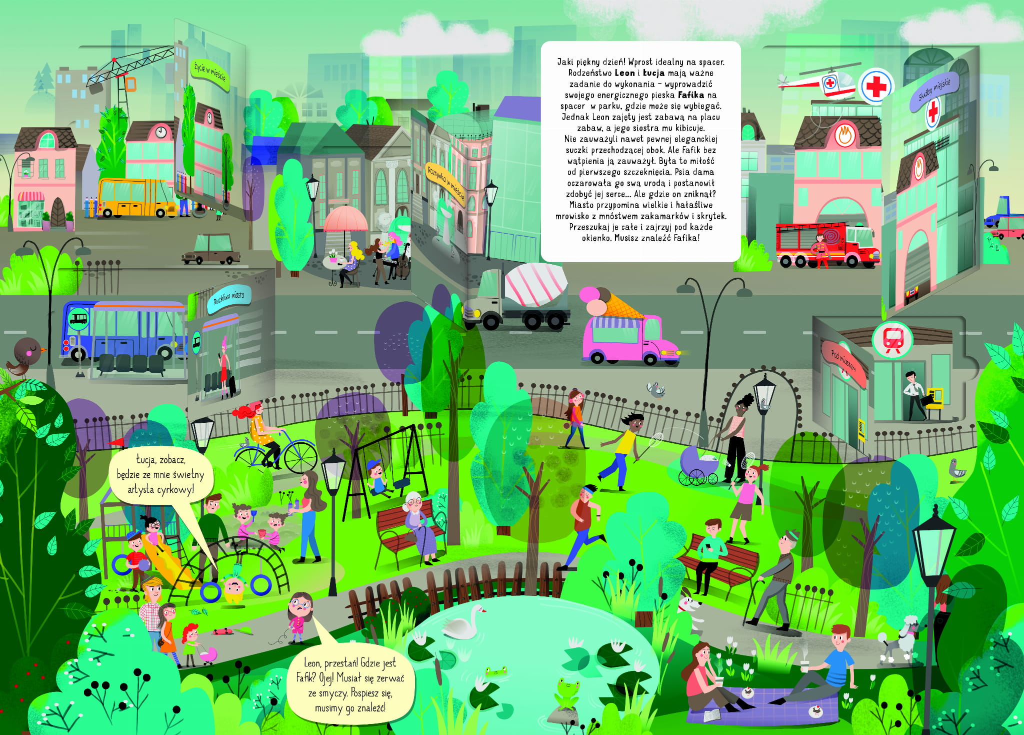 Książeczka "Nasze miasto" to wspaniała przygoda dla każdego małego czytelnika. Pełna kolorowych ilustracji, zachęcających do odkrywania świata wokół nas. Ta opowieść o rodzeństwie Lusii i Leona, którzy szukają swojego ukochanego psa Papika, z pewnością wciągnie każde dziecko.
