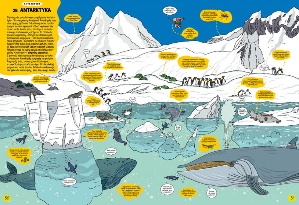 Odpowiedzi na te pytania i wiele innych znajdują się w tej oto ilustrowanej księdze przyrody świata. Dzięki niej poznasz 37 osobliwych miejsc na kuli ziemskiej o zachwycającej urodzie. Każde z nich zostało pokazane na dużej planszy obfitującej w mnóstwo szczegółów rysunkowych oraz informacji o zwierzętach i roślinach.