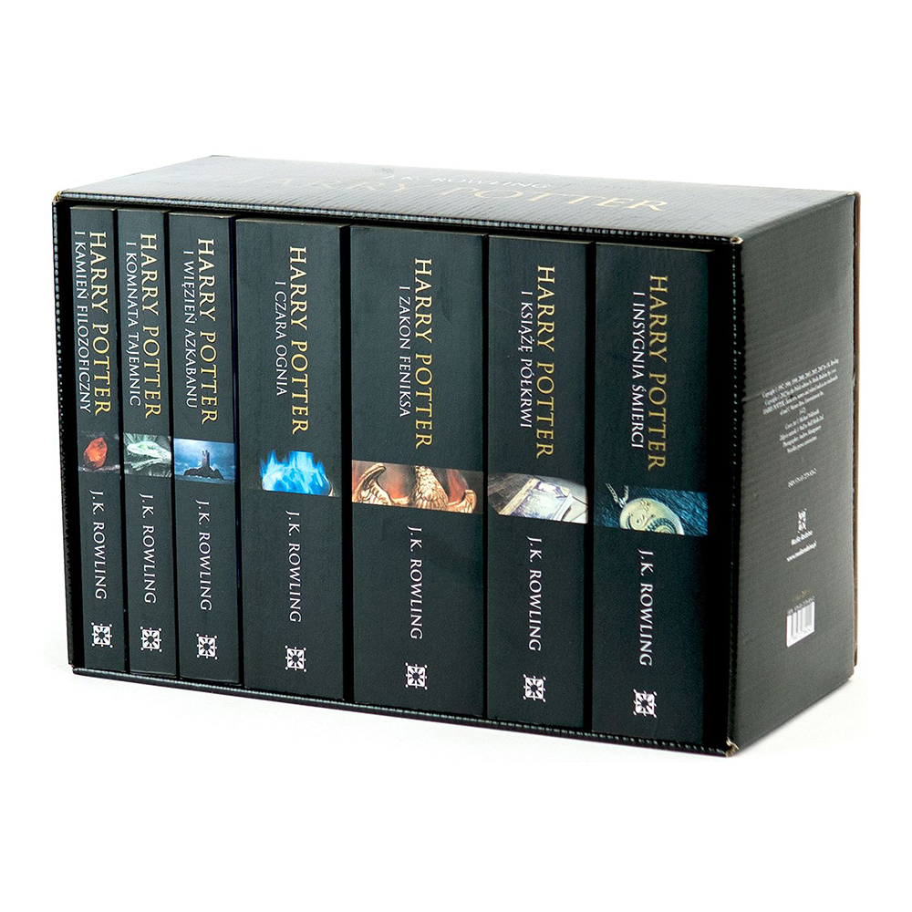 Harry Potter – siedmiopak, oprawa miękka– kompletny zestaw wszystkich tomów serii wszech czasów dla dzieci i młodzieży (a także dla dorosłych!). Wydanie w czarnych, fotograficznych okładkach.
