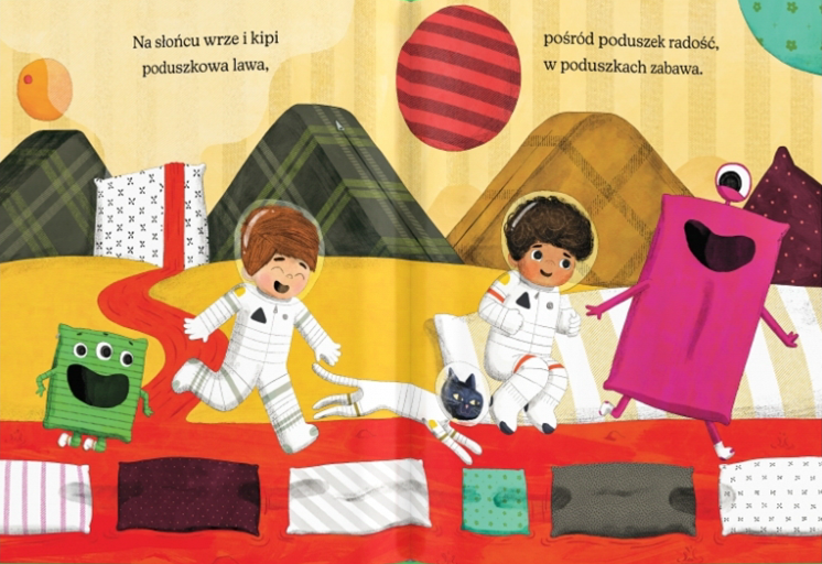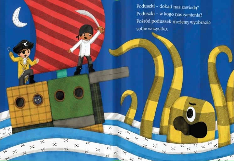 Poduszki przydają się nie tylko wtedy, gdy kładziemy się spać. Pomagają też marzyć… O fortach, okrętach i nieodkrytych światach wśród gwiazd. „Poduszki” to pełna czułości opowiastka o sile przyjaźni i wyobraźni, mogąca ułatwić pierwszą noc spędzaną w obcym miejscu.