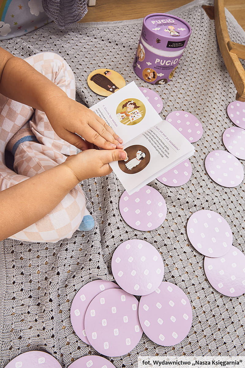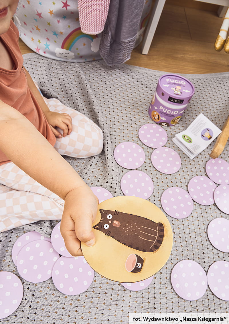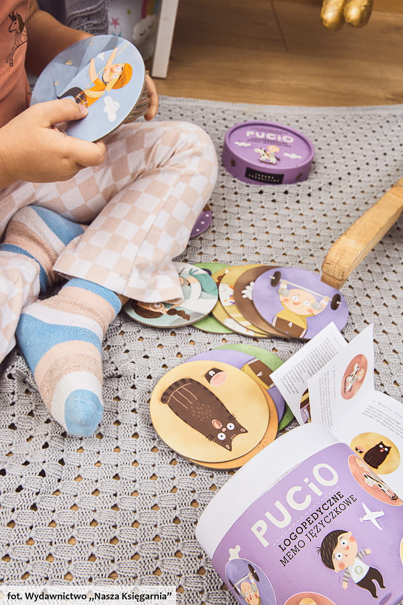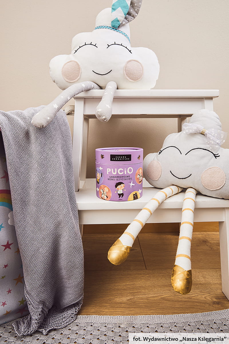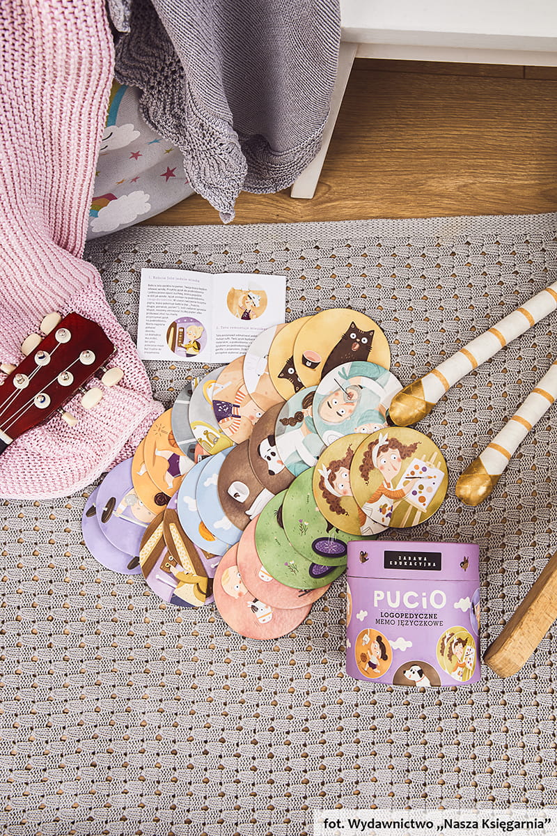 TO NIE JEST ZWYCZAJNE MEMO! Oprócz tradycyjnej gry otrzymujecie zestaw ćwiczeń logopedycznych, tak ważnych dla poprawnej wymowy głosek – do tego w formie fantastycznej zabawy! Na obrazkach zobaczycie Pucia i członków jego rodziny wykonujących różne ciekawe czynności.