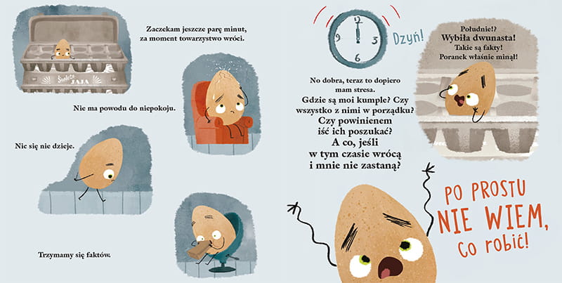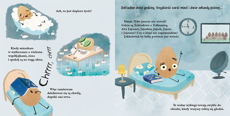 A może potrzebny jest pretekst do zabawy z kolegami? Pełna humoru, ciepła i mądra opowieść o sekretnym życiu kartonu jajek to sposób na to, by zaprosić dziecko do rozmowy o emocjach, potrzebie równowagi pomiędzy byciem w grupie a czasem dla siebie, a także o tym, że zanim się z czegoś zrezygnuje, warto tego spróbować.
