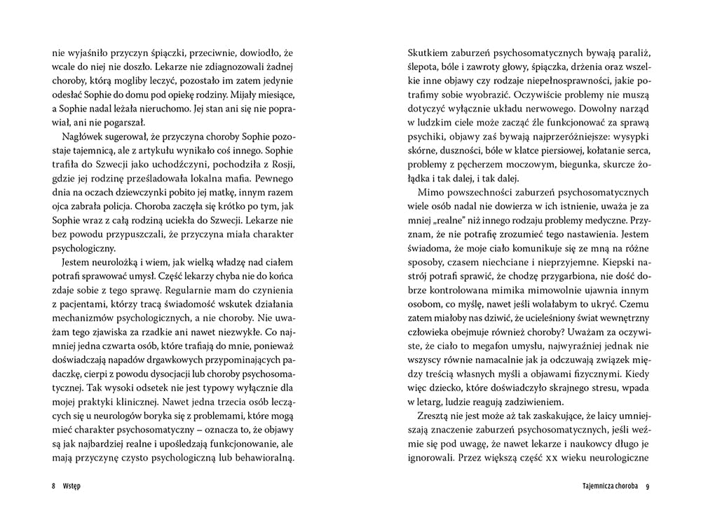 O'Sullivan pokazuje, jak umysł może wpływać na stan ciała oraz jak traumatyczne wydarzenia mogą prowadzić do powstania chorób, których nie da się zidentyfikować metodami naukowymi. Książka ta jest nie tylko wciągającą lekturą, ale również pozwala zanurzyć się w tajemniczy świat relacji między umysłem a ciałem.