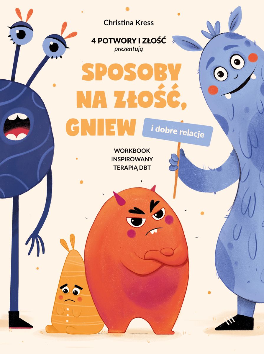 Książka-narzędzie, które może być stosowane zarówno w domu z rodzicem, jak i w gabinecie psychologa. Złość rzadko rodzi się w próżni, najczęściej odczuwamy tę emocję w kontekście relacji międzyludzkich. Często jest przykrywką dla wielu innych emocji, które w sobie nosimy. Opierając się na powyższych założeniach, książka przedstawia 35 aktywacji inspirowanych terapią dialektyczno-behawioralną. Niewiele teorii, dużo ćwiczeń, gra psychoedukacyjna i autorskie metody pracy psychologicznej inspirowane DBT, np. rozbrajanie bomby złości inspirowane analizą łańcuchową czy Domek Złości. DBT jest certyfikowaną metodą terapeutyczną o kliniczne udowodnionej skuteczności. Ćwiczenia mogą być też wykorzystywane w ramach elementarnej pracy psychologicznej. To pierwsza książka z serii 4 POTWORY I ZŁOŚĆ. Seria nawiązuje do 4 stylów radzenia sobie ze złością: apatyczny, pasywny, wybuchowy, asertywny. Workbook powstał z myślą o dzieciach, które złość odczuwają intensywnie i reagują wybuchowo.