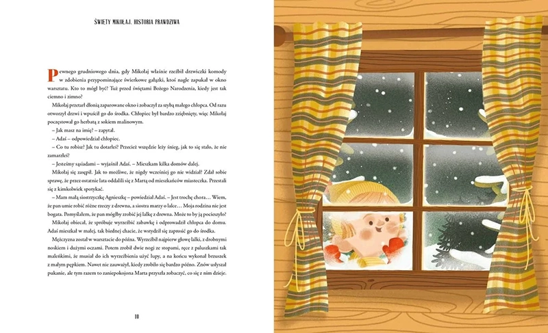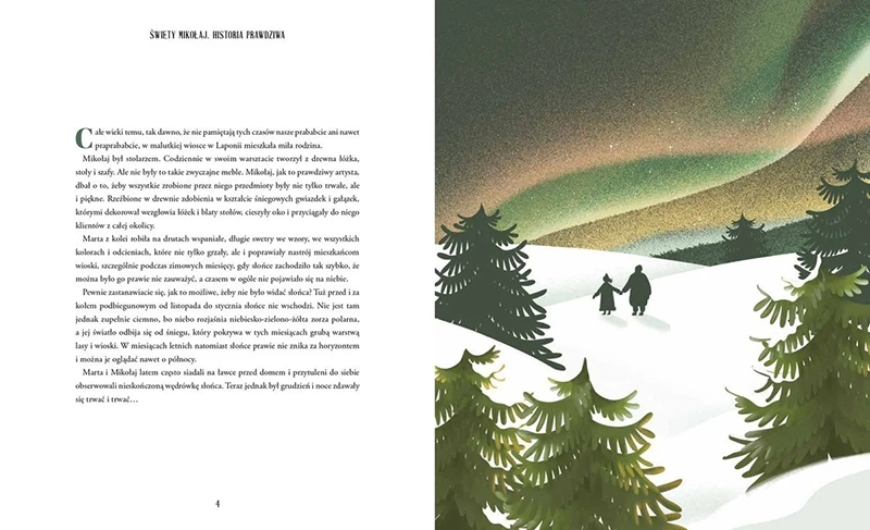 Całe wieki temu, tak dawno, że tych czasów nie pamiętają nasze prababcie ani nawet praprababcie, w malutkiej wiosce w Laponii mieszkała pewna miła rodzina. Mikołaj był stolarzem, a jego żona Marta robiła na drutach wzorzyste swetry.