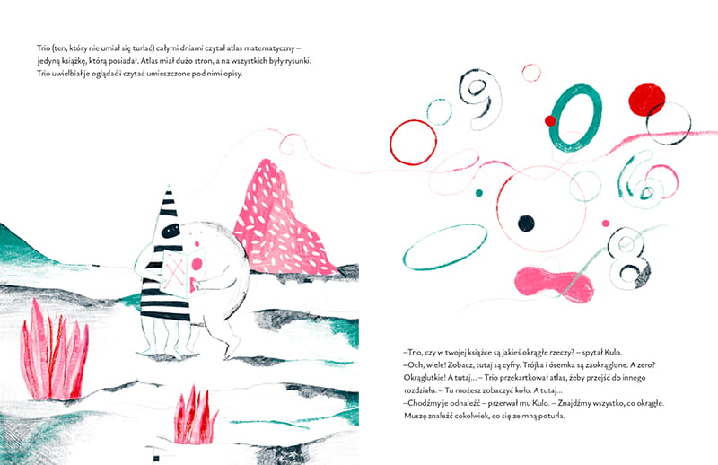 "Trio i Kulo" to opowieść o... matematyce. Pierwsza część przyciągnie czytelników i czytelniczki ilustracjami oraz ekscytującymi przygodami; o matematycznych przestrzeniach autorka wspomina jedynie mimochodem. Druga część to popularnonaukowy obrazkowy słowniczek matematyczny.